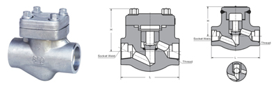 H61H、H61Y 型 800(Lb) 承插焊鍛鋼止回閥有三種體蓋連接設計形式。一種是螺栓式閥蓋:按這種設計形式設計的閥門,其閥體與閥蓋用螺栓螺母連接,纏繞式墊片(316夾柔性石墨制造)密封。客戶有特殊要求時也可采用金屬環連接。第二種設計形式是焊接式閥蓋,按這種設計形式的閥門,其閥體與閥蓋用螺紋連接,全焊密封。客戶有特殊要求時也可采用透焊連接。第三種是壓力自緊式閥蓋,按這種設計形式設計的閥門,其閥體與閥蓋用螺紋連接,內壓自密環密封。